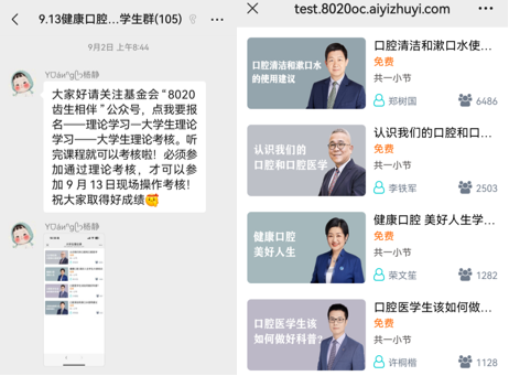 线上培训于9月1日至12日依托“8020齿生相伴”微信公众号开展,设置四门核心课程,包括“认识我们的口腔和口腔医学”、“健康口腔 美好人生”、“口腔医员工该如何做好科普”以及“口腔清洁和漱口水使用建议”。员工通过公众号完成理论学习并参与线上考核,考核通过者方可进入线下实操环节。