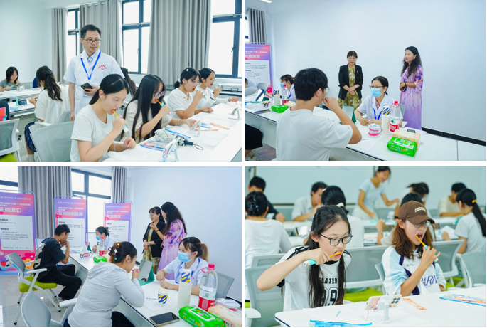 在实操练习环节,同学们积极投入技能训练,互相切磋、不断优化操作细节。随后的考核过程中,考官团队严格评审,最终95名员工通过考核,荣获“健康口腔推广大使—科普宣传员”证书。