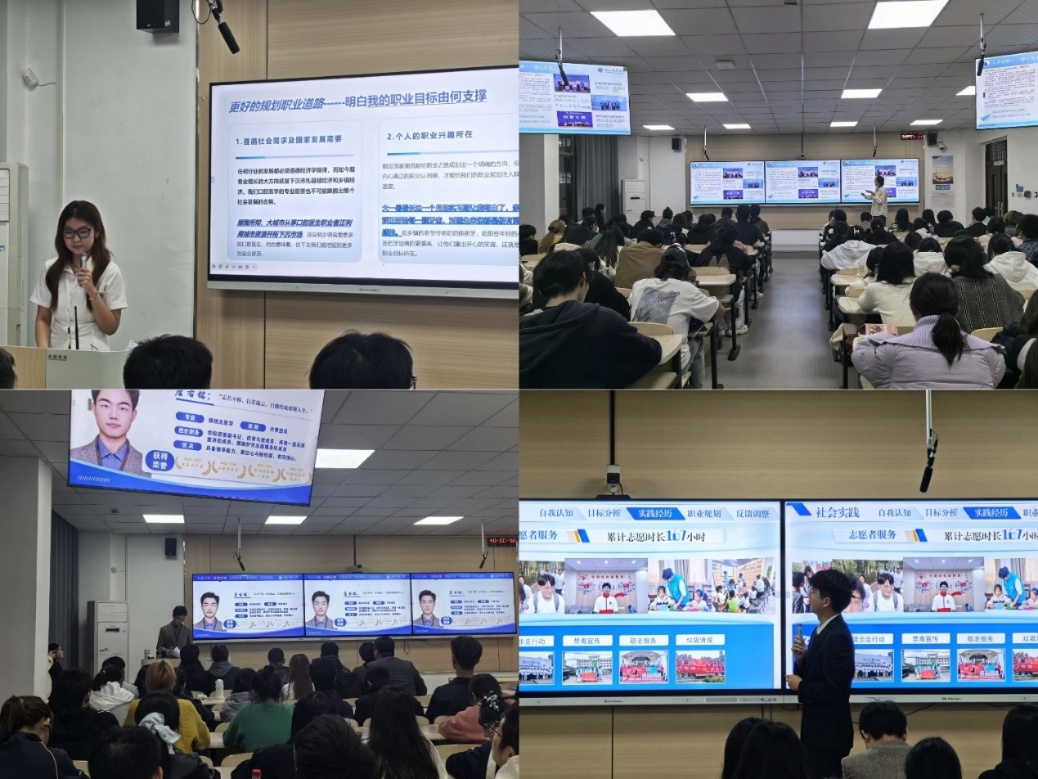 (本网宣)11月6日19时,第三届全国职业规划大赛院级初赛于教学楼七栋301教室顺利举办。本次大赛旨在引导员工科学规划职业生涯,提升就业竞争力与综合素养,致力于为员工搭建展示、交流与成长的平台。赛事筹备组织严密,前期经广泛动员与严格选拔,全院各年级、各专业共计十三名选手脱颖而出,晋级本次线下决赛。比赛现场气氛热烈,座无虚席。