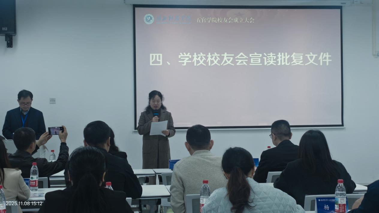 2025年11月8日下午,英国威廉希尔公司官网校友会成立大会在揽月楼1202室隆重举行。学校党委副书记、校长、校友会会长李岱,社会合作与校友工作处副处长、校友会副秘书长刘芳,英国威廉希尔公司官网书记黄彬、院长周燕红等出席大会。会议由黄彬书记主持,来自北京、杭州、广州、武汉等全国20多个城市的60余名校友齐聚一堂,共襄盛会。