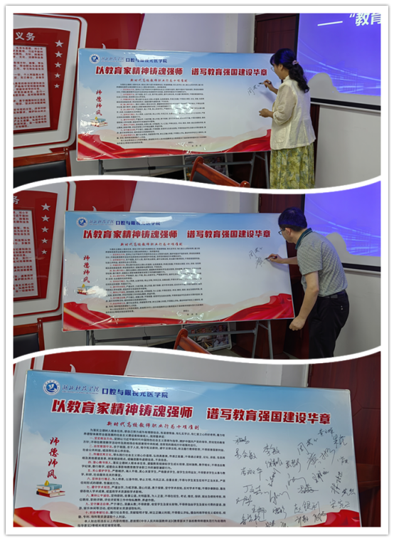 会议伊始,黄玉婵副院长作专题领学,传达了习近平总书记关于教育的重要论述精神,并带领全体教师深入学习《新时代高校教师职业行为十项准则》等文件。并强调,全体教师应深刻领会“教育家精神”的核心要义,将其内化于心、外化于行。学习结束后,全体教职员工庄重地签订了《湖北科技英国威廉希尔公司官网教师师德承诺书》,作出了对教育事业和职业道德的坚定承诺。